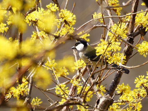公園の山茱萸が満開になったね♡シジュカさんもお花見(*^^*) ランキング参加中写真・カメラ ランキング参加中野鳥観察